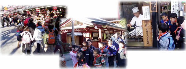 ![]() 浅草では、子ども8〜12名と先生2名が1班になって買い物。年の瀬とあって意外と人は少なかったと思います。 バンダナをつけた子がゾロゾロと歩くと周囲の人からは「可愛いねー」「偉いもんだ」など、暖かい目で見てくれます。 お店の人にも下見でよくお願いしてありますから、幼稚園児でも細かく対応してくれます。 こんな人情に触れるのもこの遠足のねらいです。 |