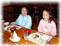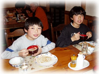 初日の食事は少し緊張感もあるようだ。 かまくらづくりで働いたのでみんな良く食べた。